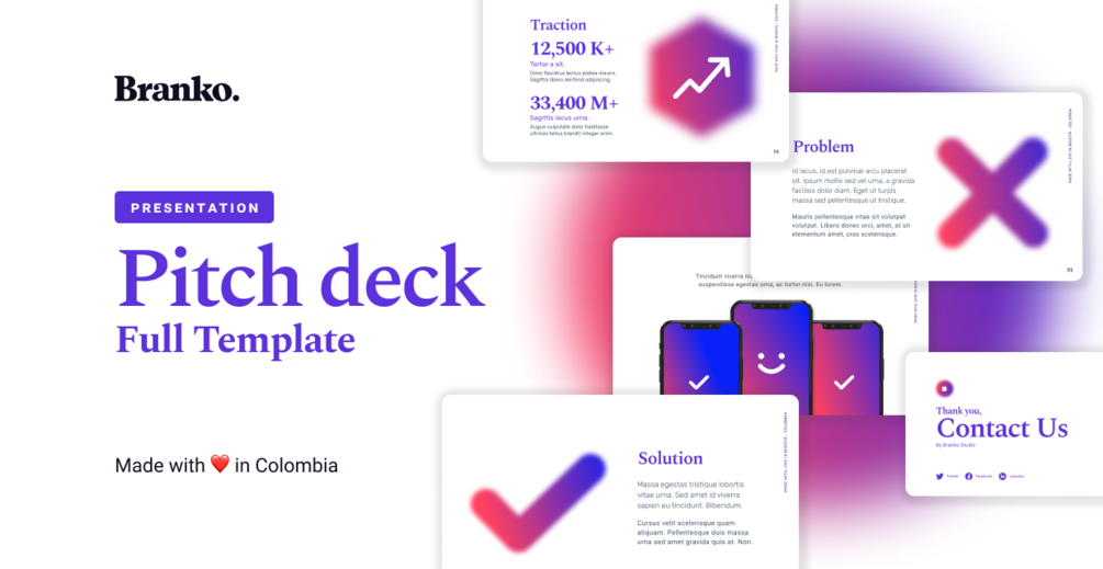 Simple Pitch deck is a premium Figma Presentation template made by Branko.